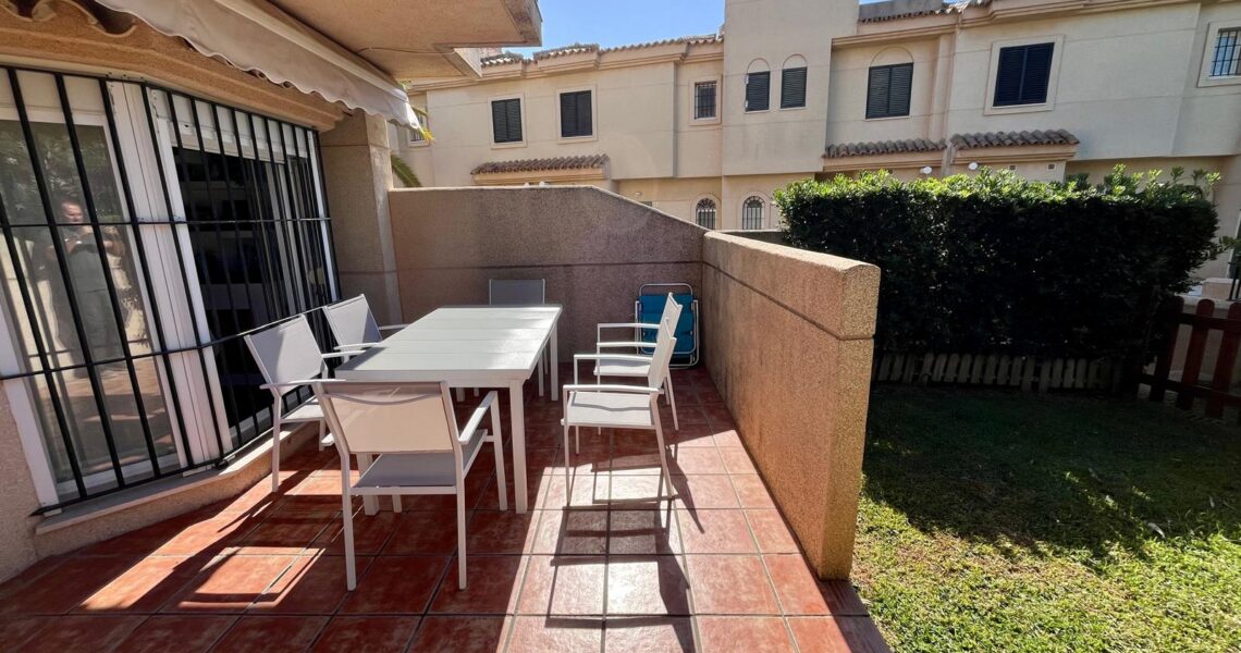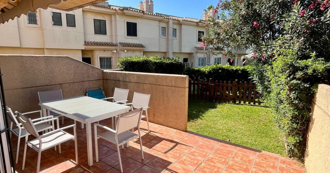 Descubre esta espectacular casa pareada en primera línea de playa, ideal para quienes buscan un refugio de tranquilidad y confort. Ubicada en la exclusiva urbanización Nuevo Oasis del Sur II, esta propiedad ofrece acceso directo al mar a través de pasarelas, permitiendo disfrutar de días soleados y refrescantes paseos junto a la costa. Además, se encuentra justo al lado de un campo de golf, perfecto para los amantes del deporte.